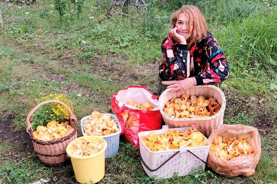 — Лисичка в этом году радует, она просто ковром! Белой стало меньше, зато обыкновенной — море. В лес зашли в час дня, через 30 минут 26-литровая корзина была полной, пришлось достать пайву. Пошли на полянку, которую в прошлую поездку оставили нетронутой, — минут сорок, и пайва на 30 литров тоже полная! Полтора часа, а у нас вся тара заполнена, — рассказала Нина.