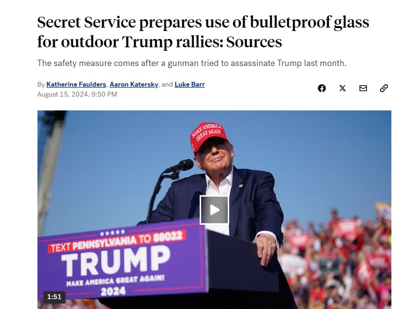 👔 Трамп возобновит выступления на открытом воздухе за пуленепробиваемым стеклом – ABC News