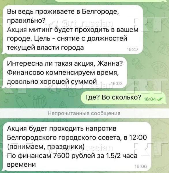 Кроме того, белгородцев призывают на некий митинг с требованием отставки местного руководства. За выход на акцию обещают 7,5 тысячи рублей, рассказала местная жительница.