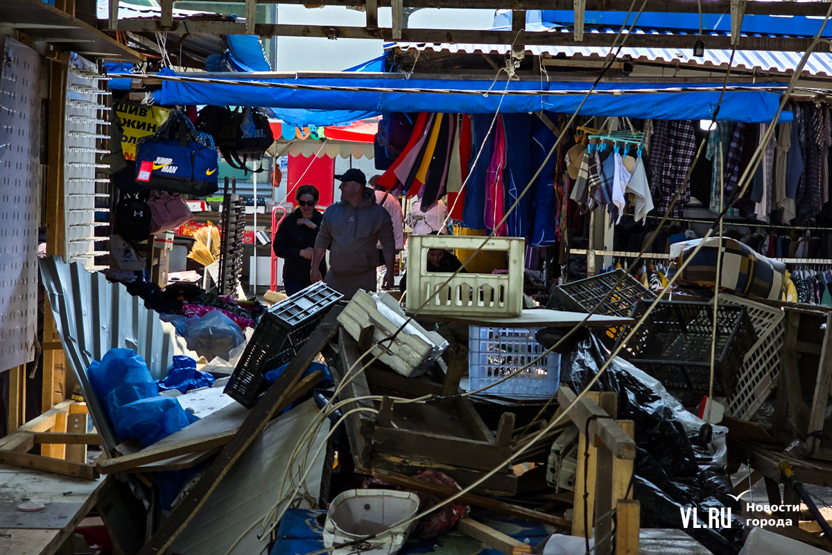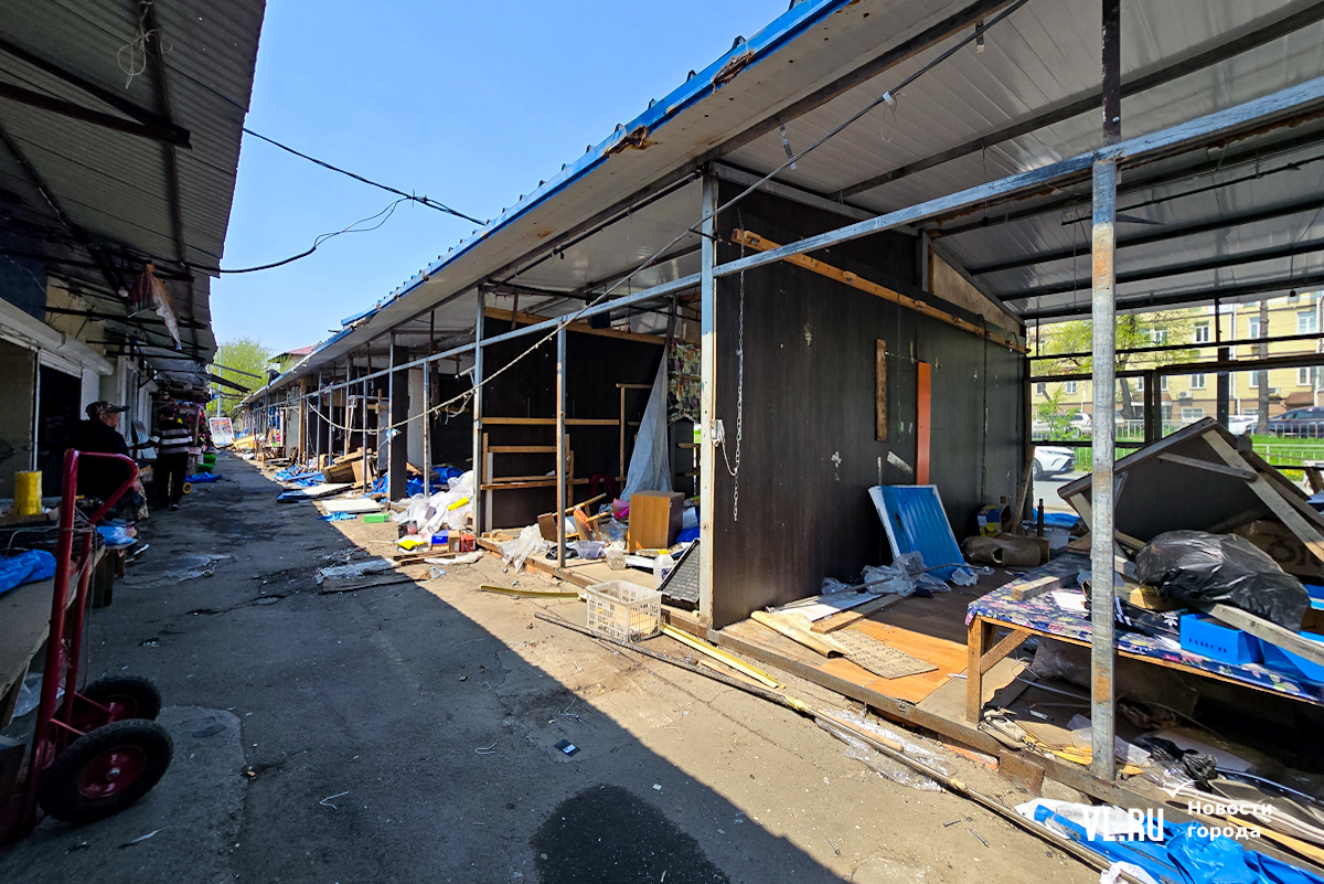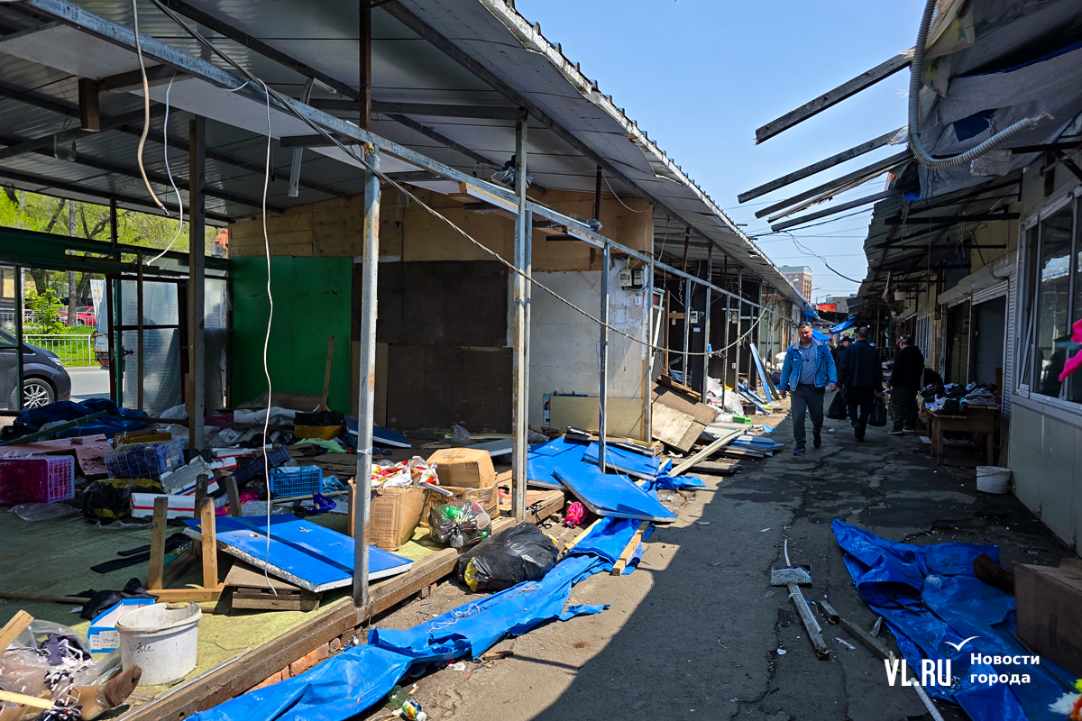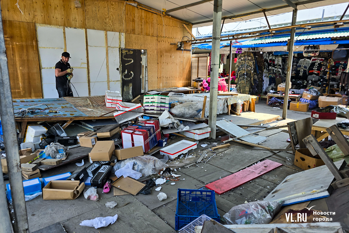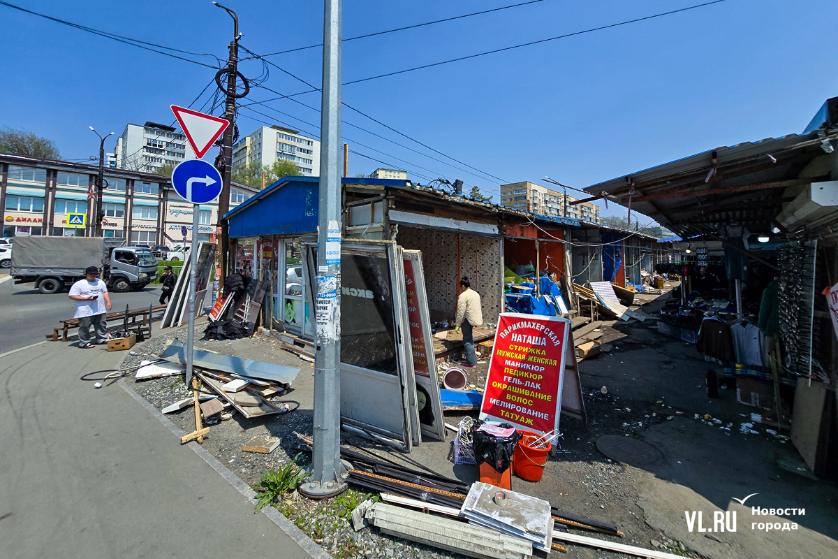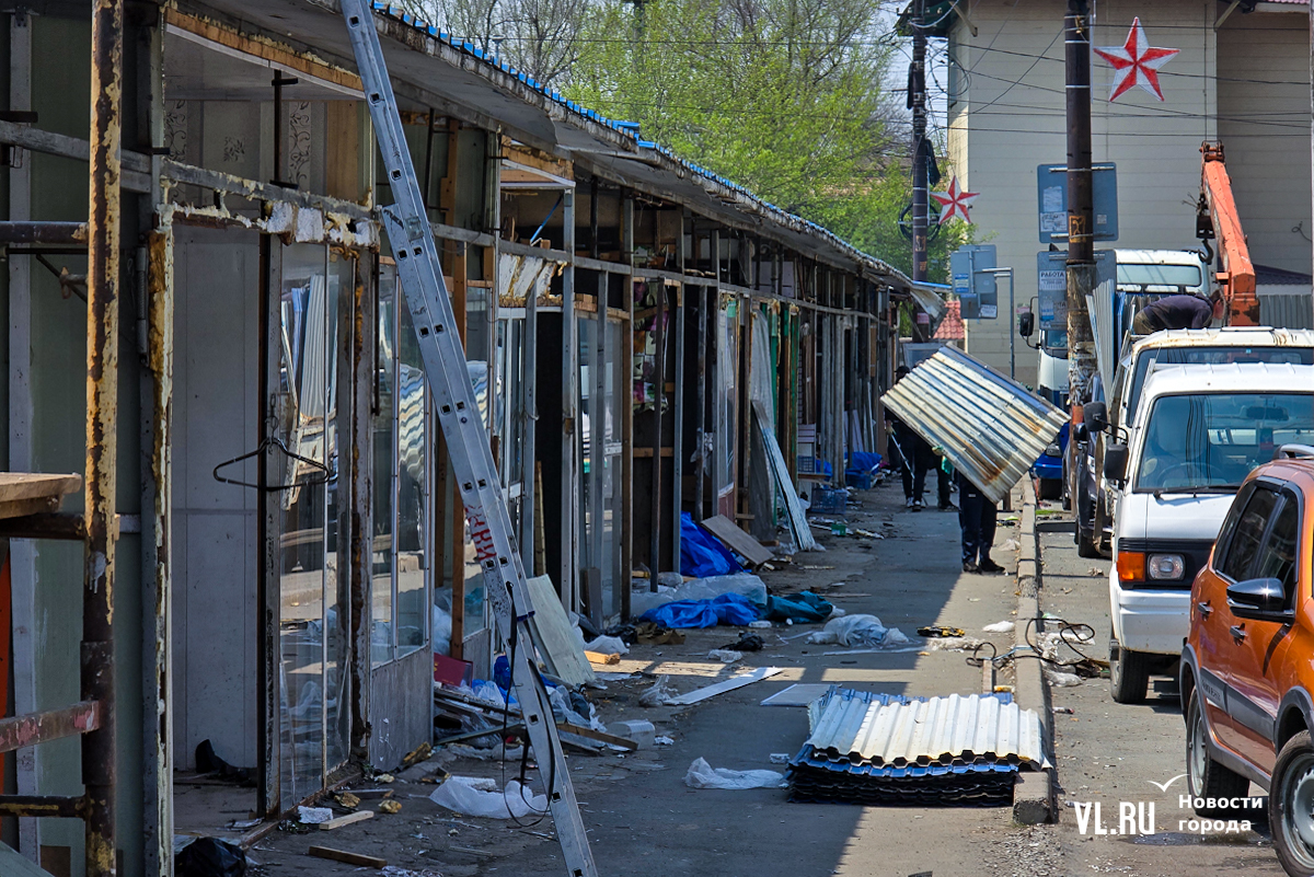 Демонтажем торговых павильонов занимается сама администрация рынка – компания ООО «Дальтехресурс». Рабочие уже разобрали первую линию ларьков, которые находятся возле проезжей части. Не тронули пока только парикмахерскую «Наташа», которая стоит ближе к торговому центру «Дружба».
