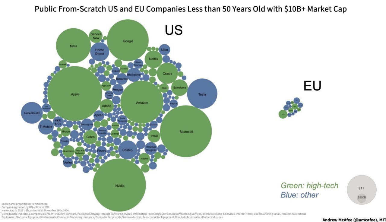 Публичные компании основанные с нуля в последние 50 лет с капитализацией более $10 млрд в США и Европе.