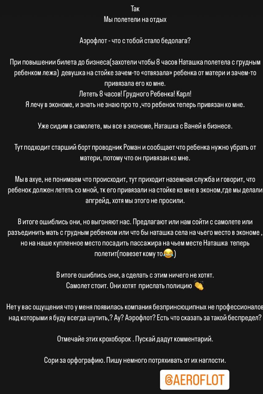 Комик также назвал «Аэрофлот» компанией беспринципных непрофессионалов и пообещал высмеивать авиаперевозчика в своих выпусках.