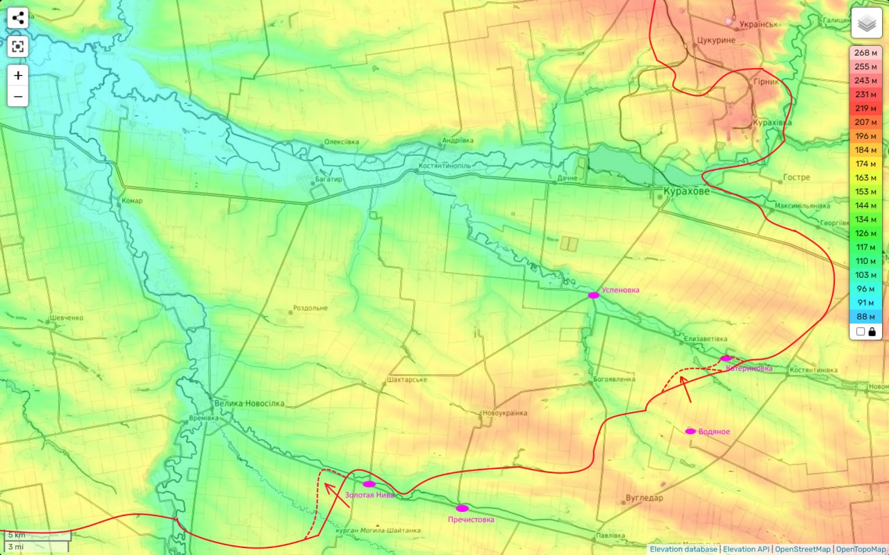 Одновременно нарастает наше давление на этот укрепрайон противника с юга (со стороны Угледара). Противник здесь тоже медленно, но пятится назад.
