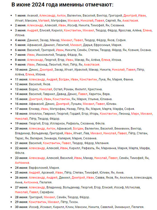 Июнь 2024 года: кто празднует именины в первый летний месяц