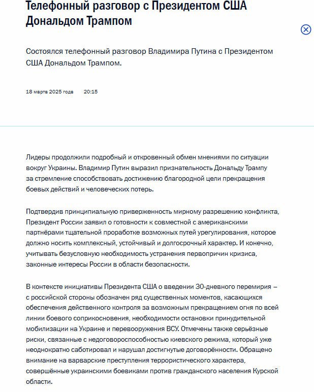 ⚡️Полное заявление Кремля после переговоров Путина и Трампа