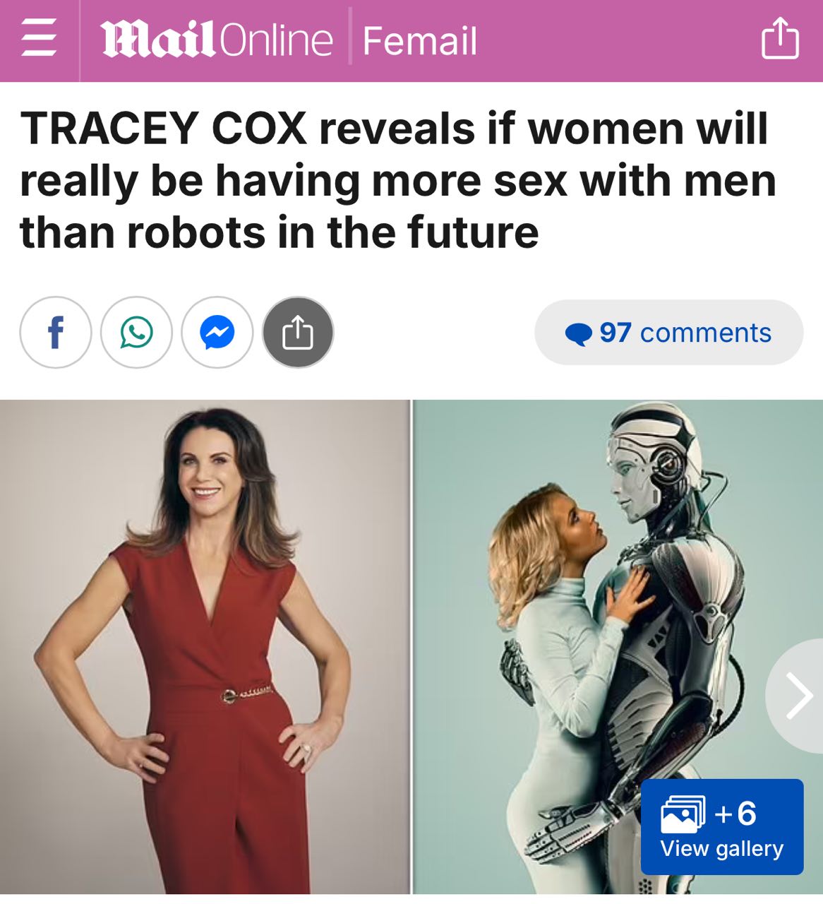 • К 2050 году секс с роботом будет более распространённым, чем секс с между людьми;