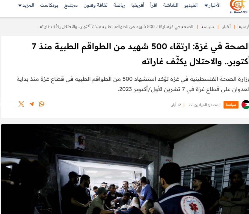 π΅πΈ 638 ΠΌΠ΅Π΄ΠΈΡΠΈΠ½ΡΠΊΠΈΡ ΡΠ°Π±ΠΎΡΠ½ΠΈΠΊΠΎΠ² ΠΏΠΎΠ³ΠΈΠ±Π»ΠΈ Π² ΡΠ΅ΠΊΡΠΎΡΠ΅ ΠΠ°Π·Π° Ρ 7 ΠΎΠΊΡΡΠ±ΡΡ 2023 Π³ΠΎΠ΄Π° β Al Mayadeen