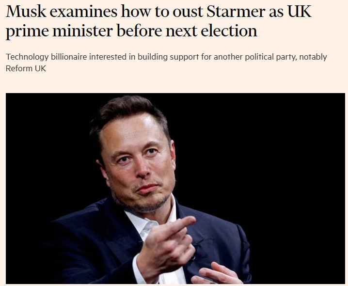 Миллиардер рассматривает возможность поддержки альтернативных политических сил, в частности правой партии Reform UK, для дестабилизации внутриполитической обстановки в Британии и дальнейшего свержения премьер-министра Кира Стармера.