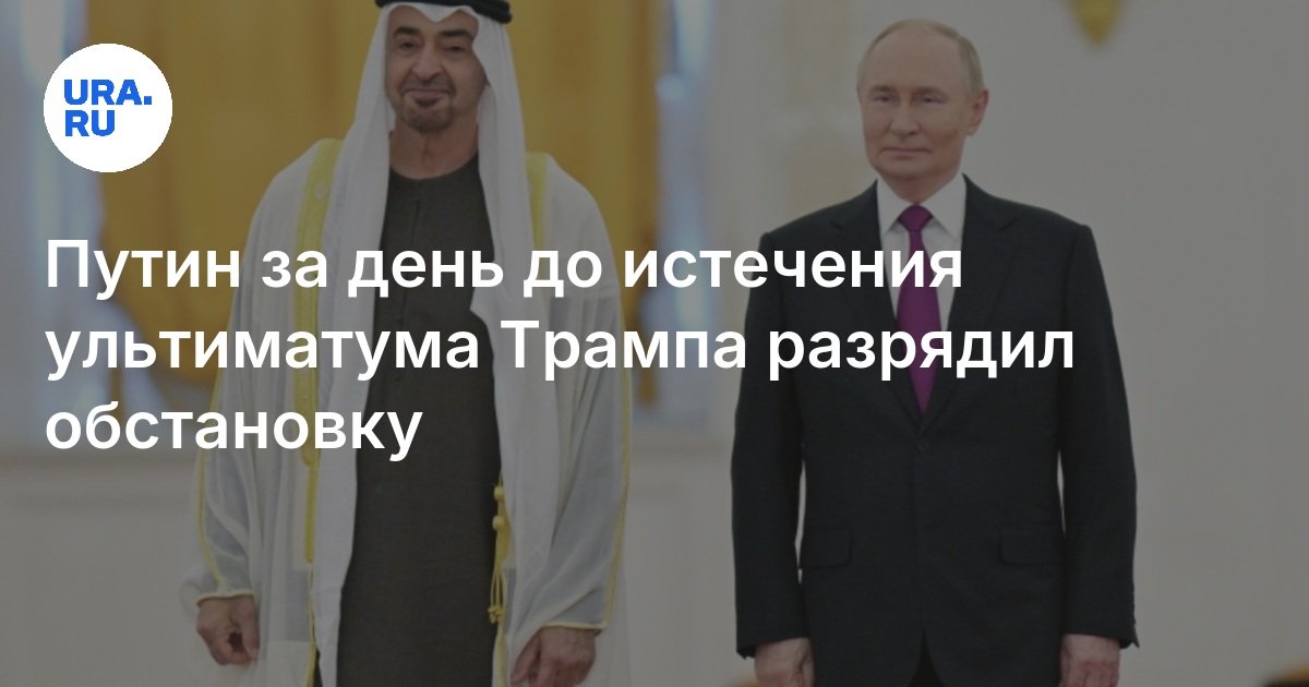 За сутки до истечения ультиматума президента США в Кремле состоялась встреча лидеров России и Объединенных Арабских Эмиратов. Владимир Путин и Мухаммад ибн Заид Аль Нахайян готовы и дальше проводить независимую от Штатов политику в интересах своих государств. И это — на фоне тесных отношений Абу-Даби и Вашингтона. Встреча Путина и Аль Нахайяна может разрядить обстановку и смягчить угрозы Дональда Трампа в адрес России, отметила в интервью URA.RU политолог-международник Елена Супонина.