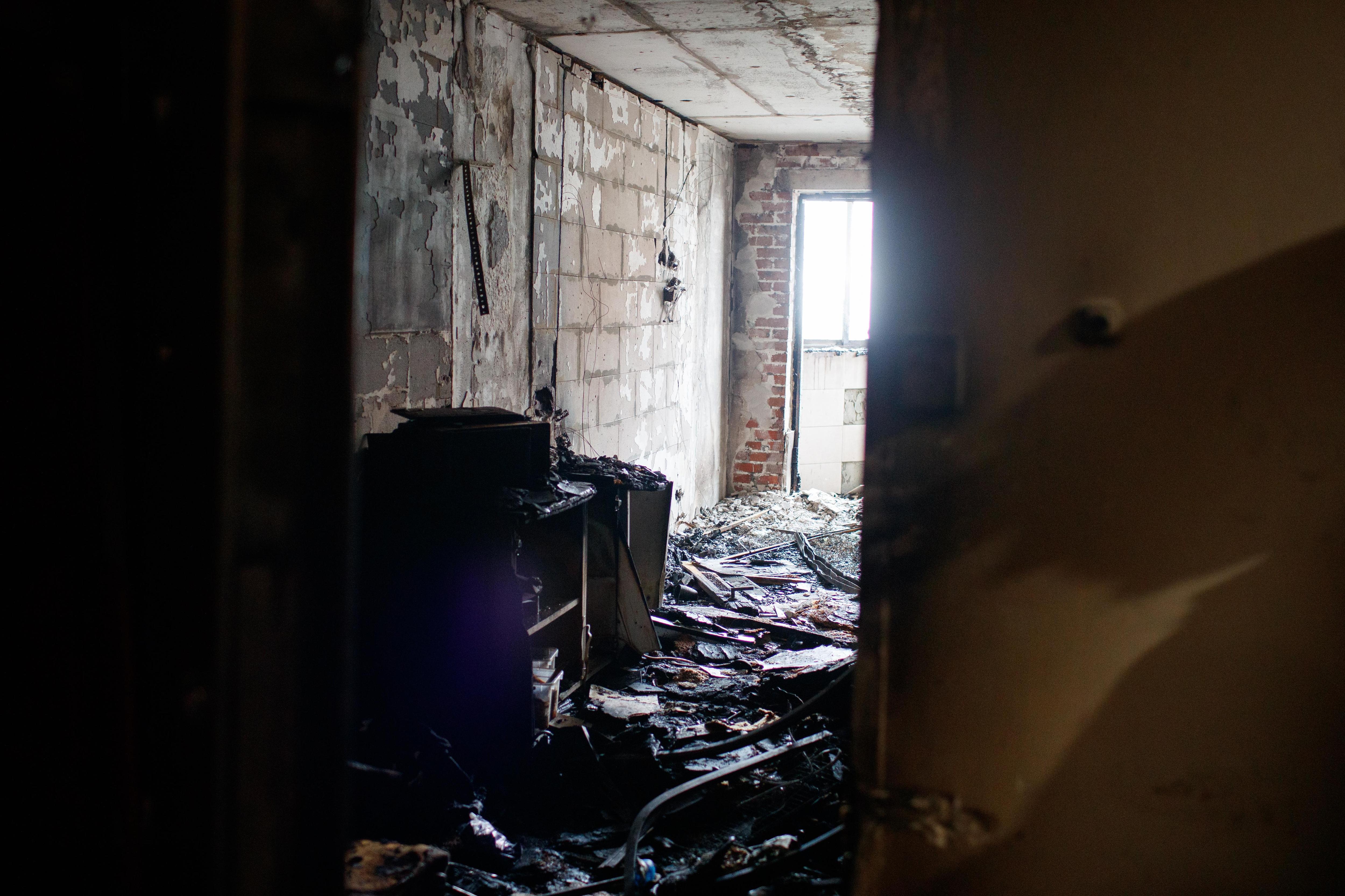 От квартиры практически ничего не осталось — пожаром уничтожено не только имущество, но и покрытие стен