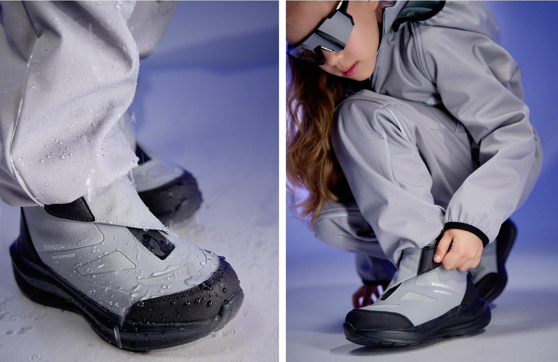 Промокшие ботинки — причина простуд, но ребенку не объяснишь, что не стоит шагать прямо в лужу. В BUNGLY это учли: в их обувь встроен мембранный носок, который не пропускает воду, даже если ботинок стал влажным снаружи. При этом ноги не потеют– материал дышит, а тепло сохраняет мягкий флисовый слой.