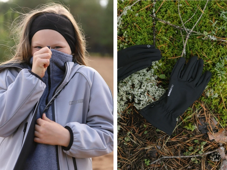 Хорошо, когда в капсуле все сочетается: в BUNGLY TEC есть перчатки с тачскрином, которые не нужно снимать на улице, снуды и повязки из плотного флиса, который не вытягивается и не скатывается, и теплые носки с массажной резинкой. Все это не просто дополнения, а изделия, которые реально влияют на комфорт ребенка в течение дня.