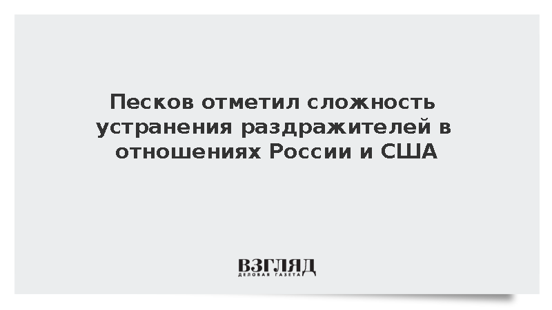 Число раздражителей в отношениях России и США остается слишком высоким, и процесс их устранения идет очень сложно, сообщил пресс-секретарь президента Дмитрий Песков.