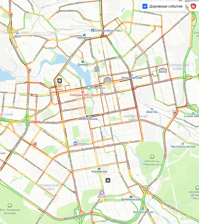 В первый день после окончания каникул Екатеринбург застрял в адских заторах. Вечером, 9 января, по данным Яндекс.Карт, пробки составляют 10 баллов. То, что движение в городе затруднено, — неудивительно, улицы так и не успели расчистить от снега. Кроме того, на дорогах аварии.