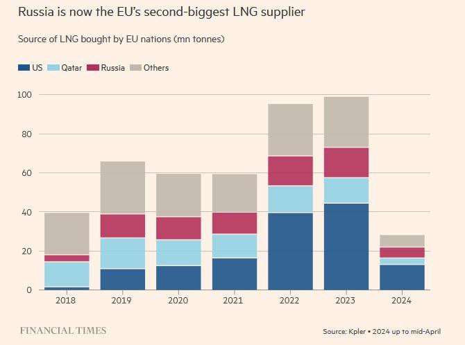 Европейский регулятор энергетики предупреждает, что ЕС все еще нужен российский СПГ. Россия на втором месте по поставкам СПГ в Европу.