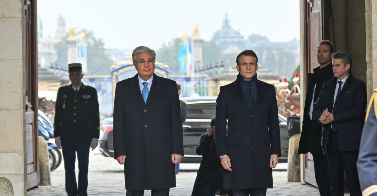 Главу государства под фанфары военного оркестра встретил президент Эмманюэль Макрон. Прозвучали государственные гимны Казахстана и Франции.