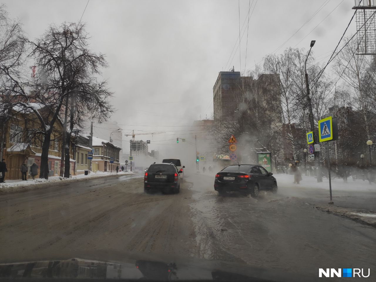 Сегодня утром рядом с перекрестком улиц Славянской и Студёной прорвало трубу с горячей водой диаметром