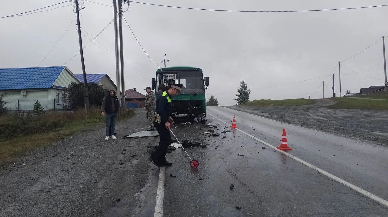 Всего на момент ДТП в салоне автобуса, который ехал в Дегтярск, находились 12 человек. Сейчас сотрудники ГИБДД проводят проверку.