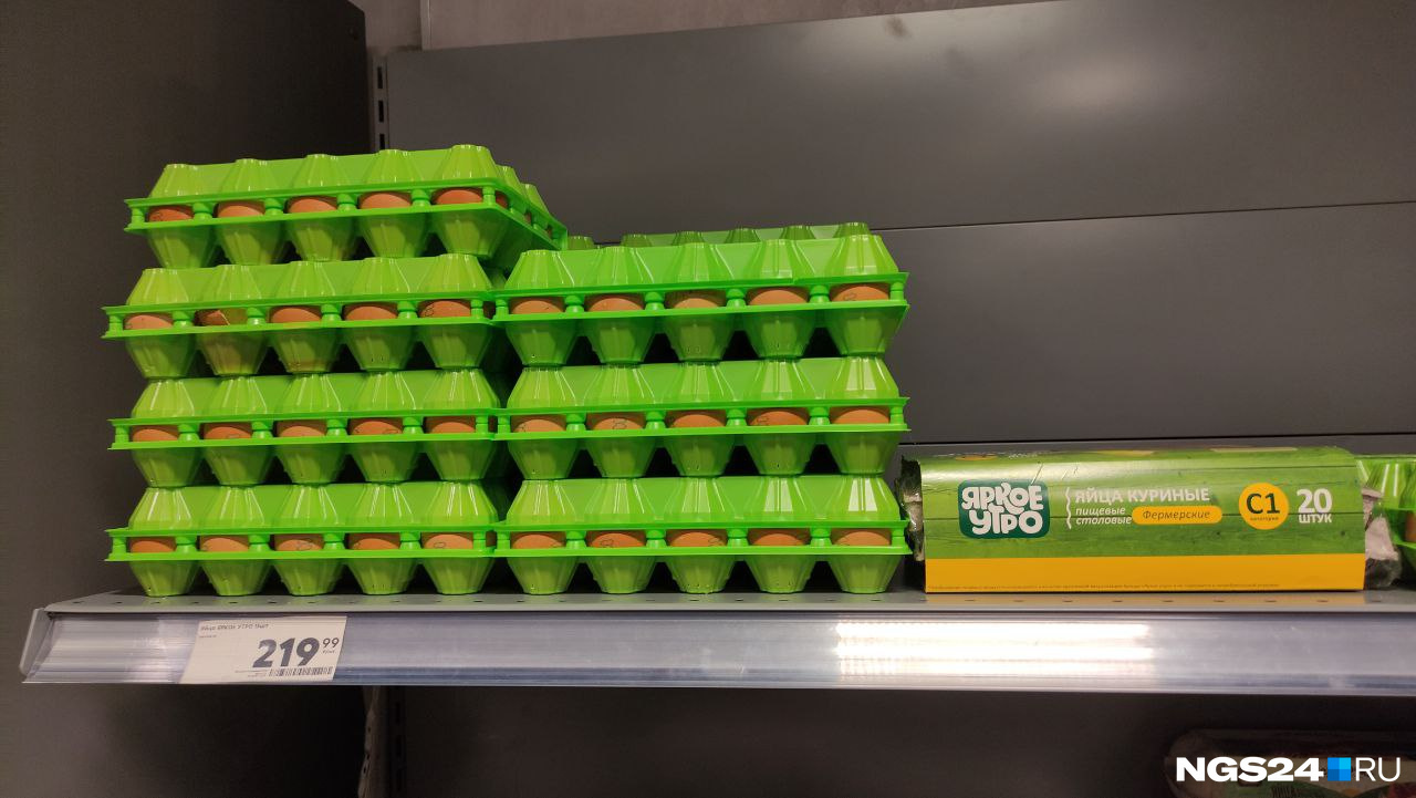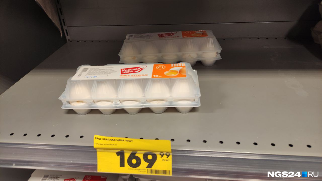 Здесь яиц дешевле 100 рублей не нашлось. Мы также обратились в пресс-службу сети магазинов «Красный Яр», чтобы уточнить, ожидается ли снижение цены на яйца в магазинах. Нам также пообещали ответить позже.