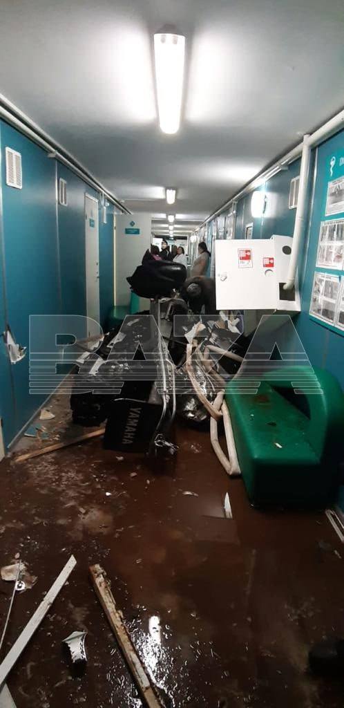 Кроме того, снегоход повредил двери и стены внутри здания, а также пробил трубы отопления в результате чего больницу залило горячей водой.