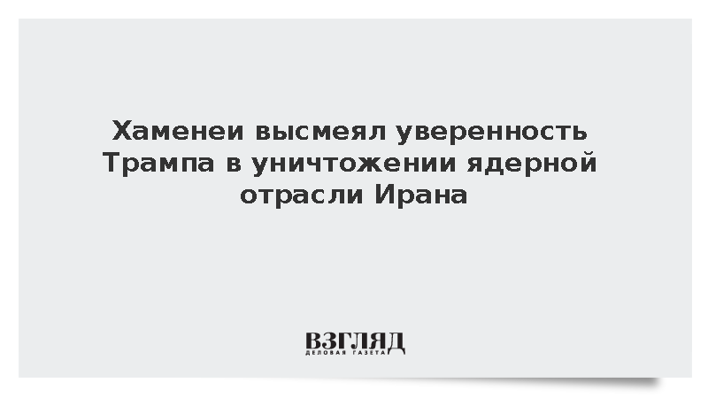 Хаменеи написал на своей странице в соцсети X (бывший Twitter, заблокирован в России): «Президент США гордится тем, что они разбомбили и уничтожили ядерную промышленность Ирана. Очень хорошо, пусть так и думает!».