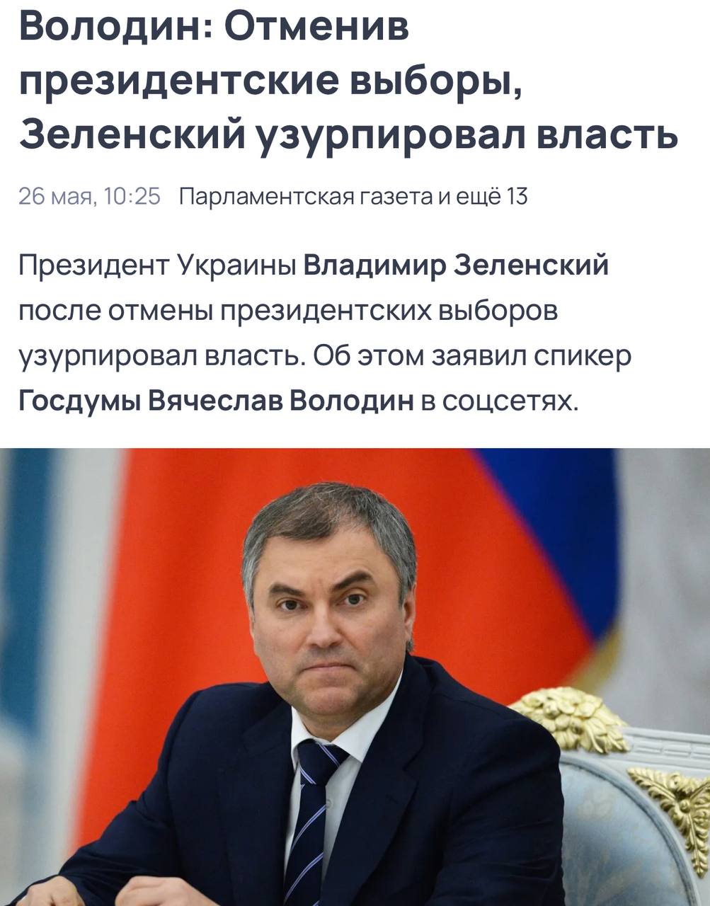 Любые соглашения с нелегитимным президентом недействительны и в будущем могут быть оспорены. С окончанием срока полномочий у Зеленского завершилось право выступать от имени Украины»,