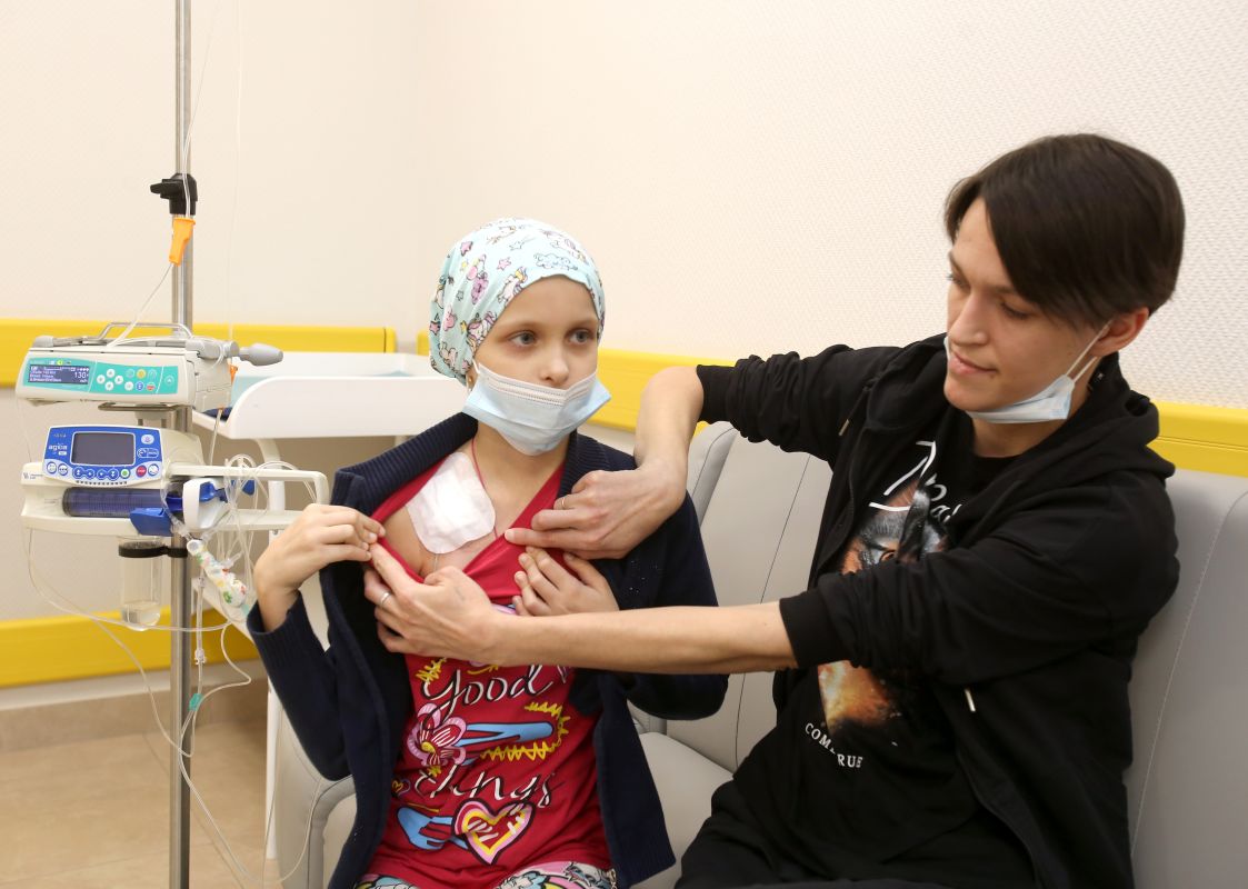 — У меня есть вырезалки: там много фигурок и вещей, из которых нужно создавать комнату, — рассказывает о том, как коротает время Ева. — Я люблю рисовать, капельницы не мешают. Я уже привыкла, что у меня под кожей всегда иголки. Ко мне даже учитель приходит, трижды в неделю, так что от школы я сильно не отстану! А еще у меня есть подружка из соседней палаты, но сейчас она себя плохо чувствует, не до игр. Люблю, когда приходят волонтеры, с ними я могу поболтать и посмеяться, будто обычная девочка, — тараторит Ева, поправляя панамку.