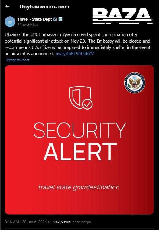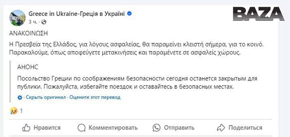 Ранее американское посольство сообщило, что получило информацию о возможных «угрозах безопасности» дипломатам в связи с ракетным ударом по всей Украине. Позже испанское, итальянское и греческое посольства также объявили о закрытии своих представительств.