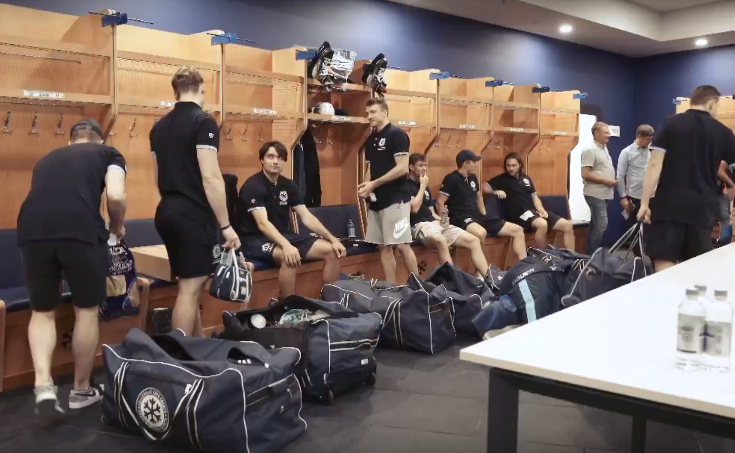На видеозаписи, размещенной в соцсети, хоккеисты готовятся к переезду на новое место и показывают старую раздевалку.