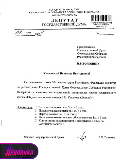 Проект закона об увековечивании памяти Владимира Ильича Ленина внесла в Госдуму депутат КПРФ Анжелика Глазкова. Предложение поступило после вышедшего на телеканале «Спас» фильма «Мумия» — документального фильма о мавзолее, в котором авторы поставили себе цель — рассказать подробно об истории усыпальницы Ленина, в том числе об оккультных корнях и духовных смыслах, которые были вложены в этот объект его создателями.