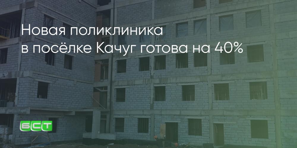В Качуге строят новую поликлинику на 200 посещений в смену. Строительная готовность составляет порядка 40 процентов. Об этом сообщает ИА «БСТ» со ссылкой на пресс-службу правительства Иркутской области.