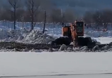 По словам интернет-пользователей, работающую технику заметили на реке Уса. Судя по опубликованным кадрам, экскаватор стоит на берегу водоема, раскапывая реку, все еще покрытую льдом.