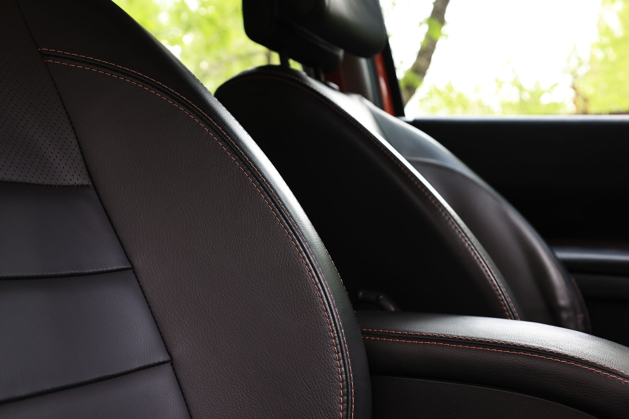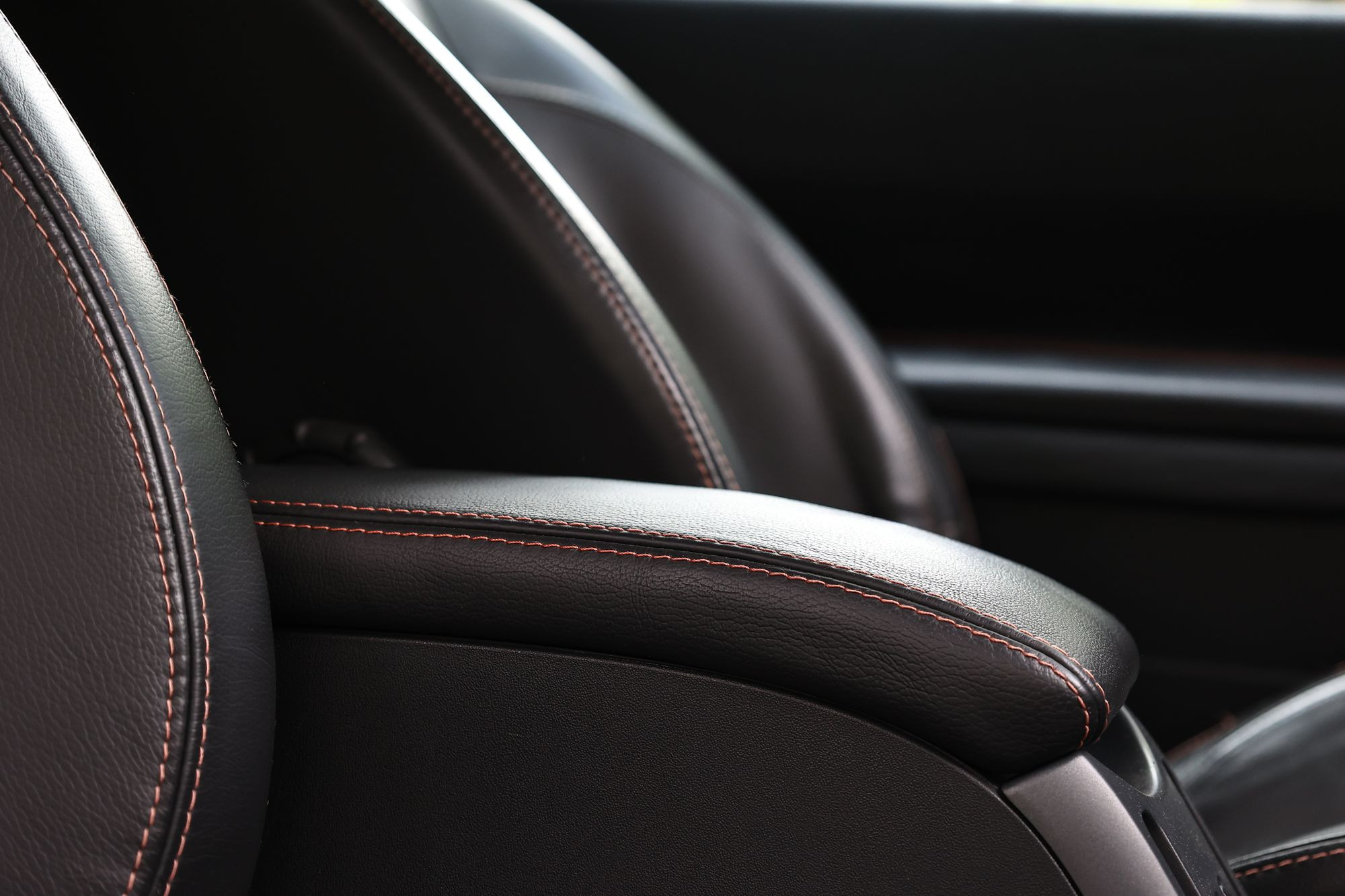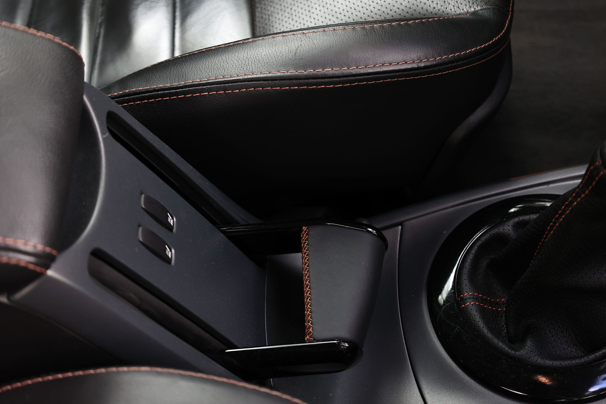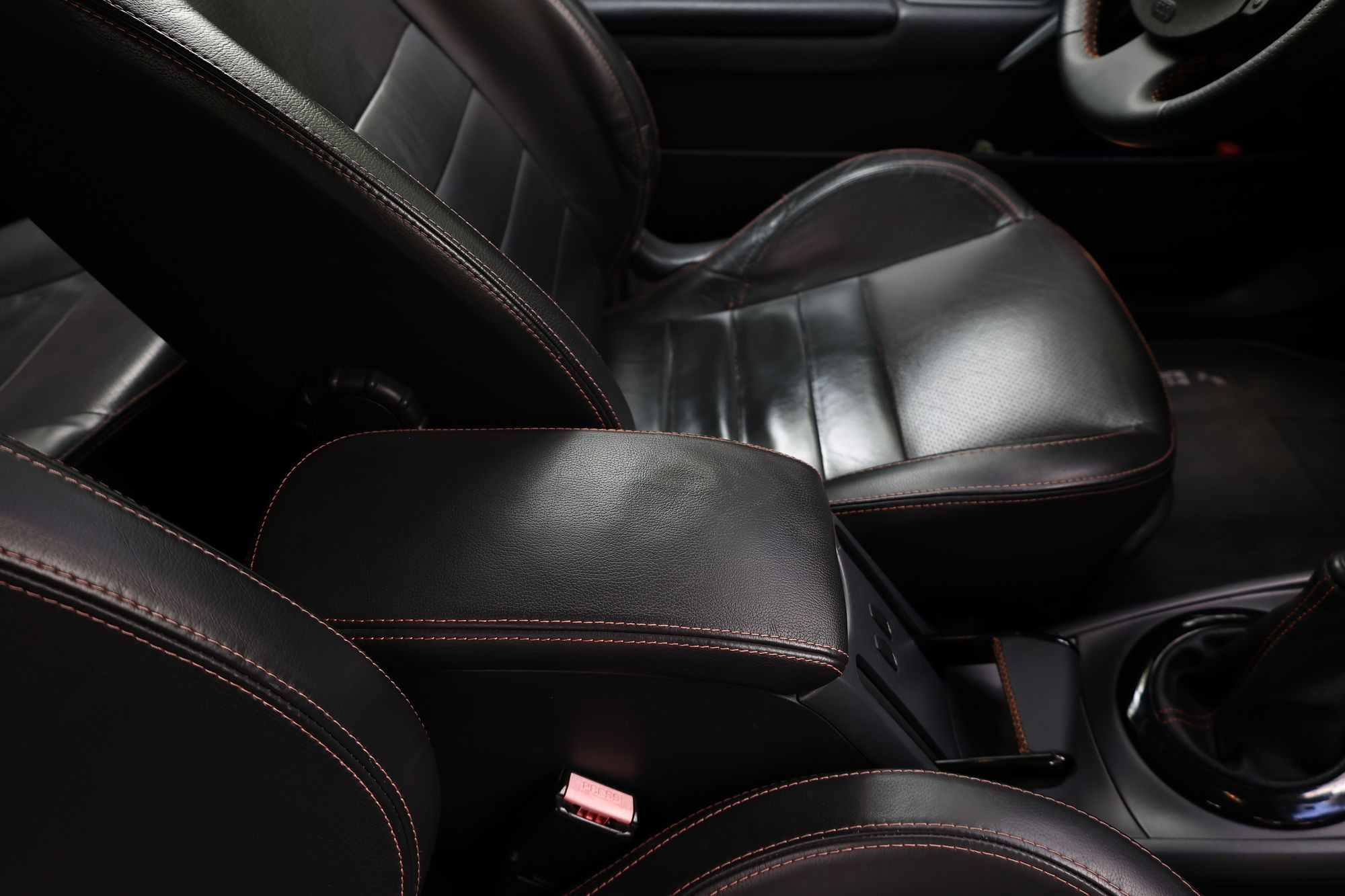 Сиденья не перешивались – только реставрировались. Дверные карты перешивались с минимальными отличиями – в ту же самую перфорированную кожу, но с оранжевой строчкой, в отличие от оригинала. Перешивался потолок, восстанавливалась кое-где пластмасса интерьера, поскольку она сильно деградирует на солнце.