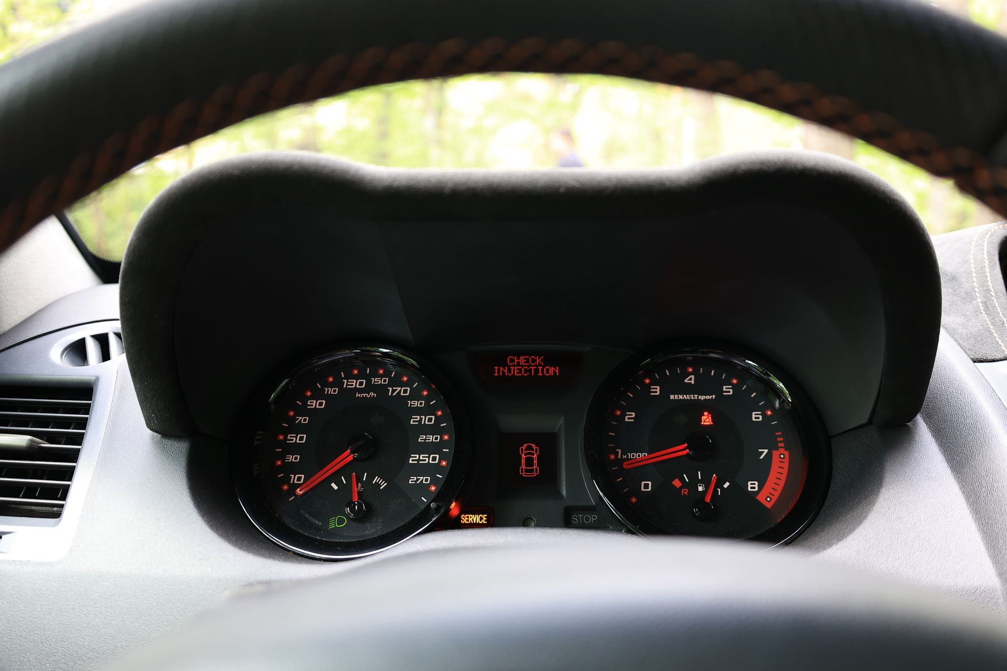 Отдельного внимания заслуживает приборная панель. Она заметно отличается от обычной мегановской по дизайну, размечена до 270, а не до 250 км/ч (для тру-спортсменов) и отображает индикацию открытия аж четырех боковых дверей из двух (для любителей практической пользы).