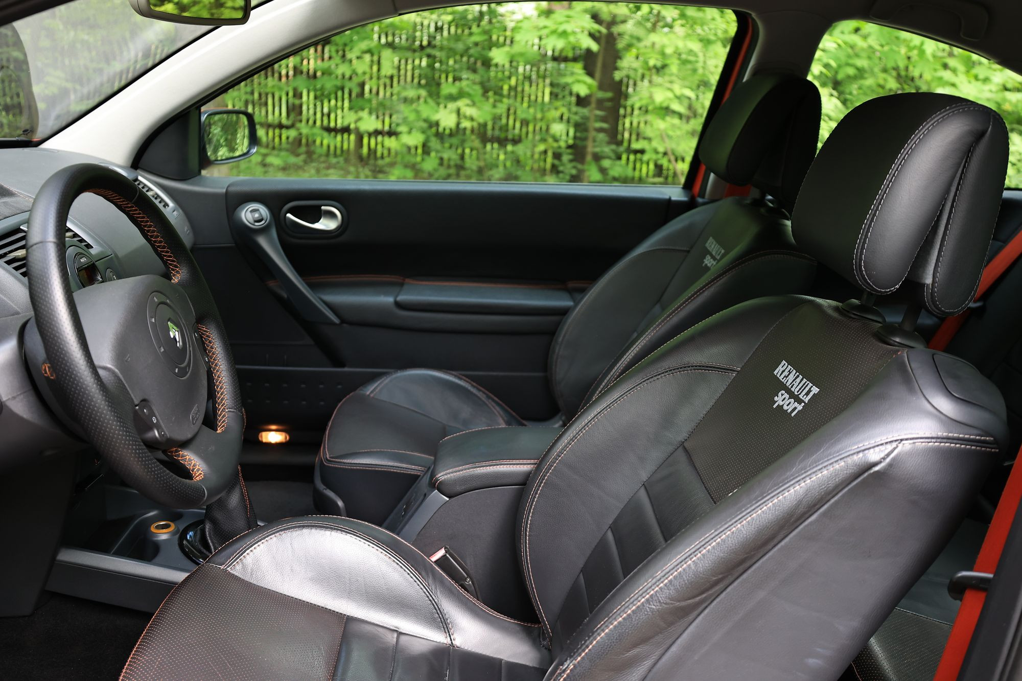 Штатную отделку кресел удалось сберечь. Сиденья на хот-хэтче – роскошные, не имеющие ничего общего с рядовыми «овощными» Меганчиками! Цепкие, хваткие – максимально спортивные, насколько это в принципе возможно при сохранении комфортной повседневной эксплуатации автомобиля в городском трафике.