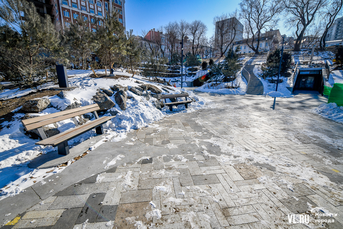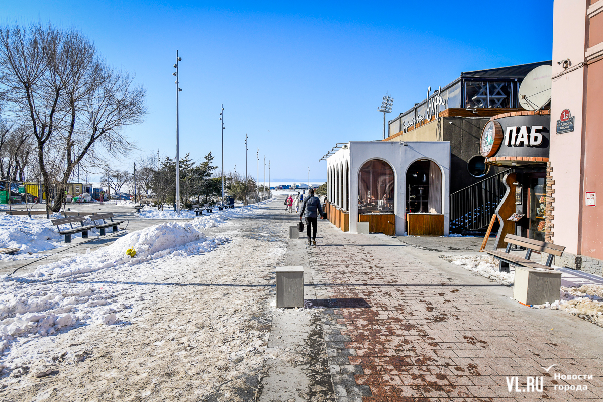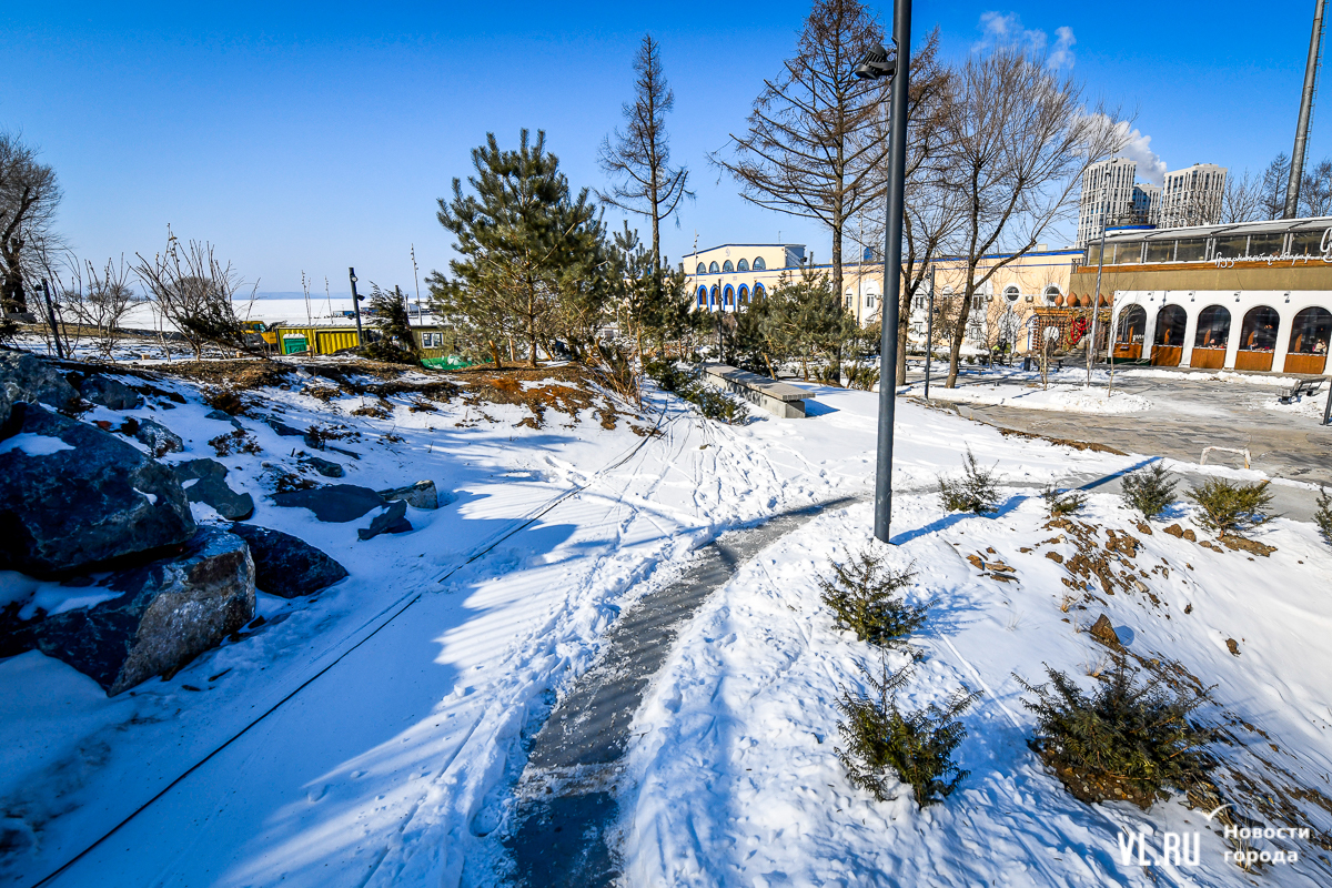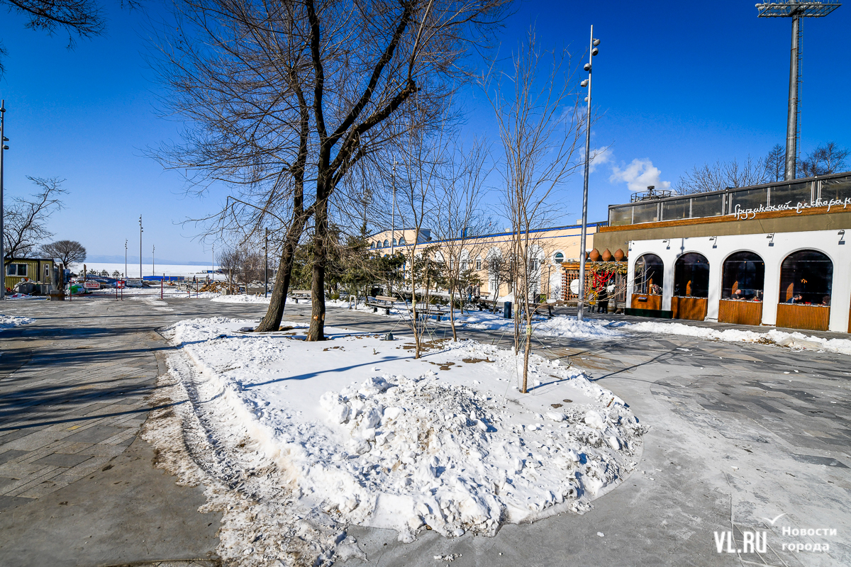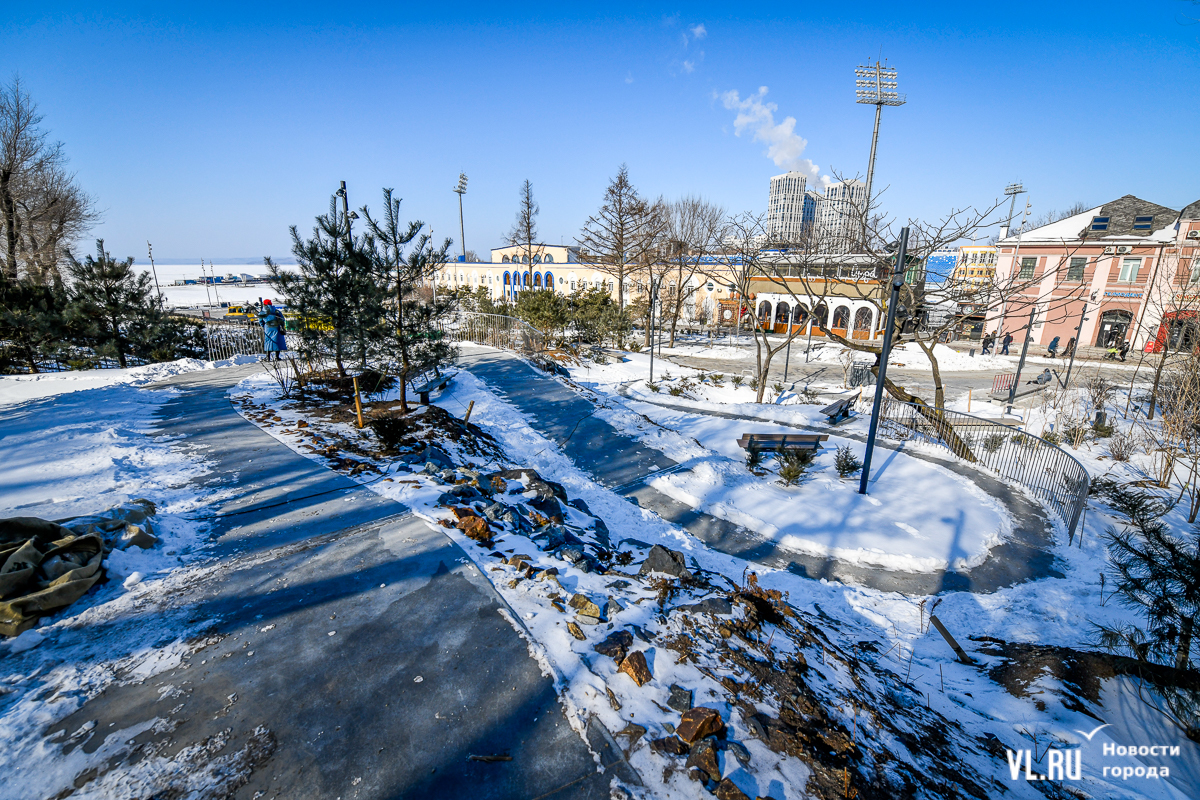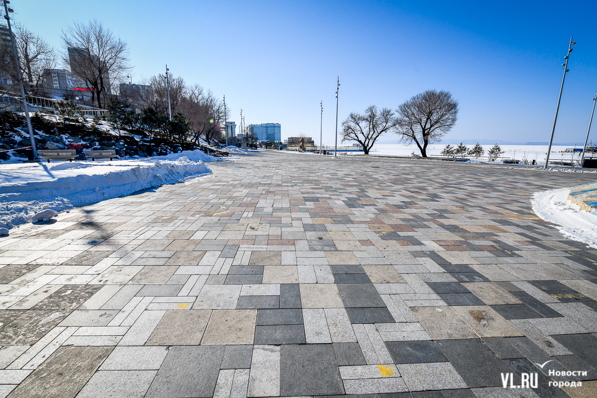 Обновлённая, но местами всё ещё обновляемая набережная Спортивной гавани постепенно открывается жителям и гостям Владивостока. Теперь можно пройтись по широкому променаду от Пограничной к морю, прогуляться вокруг большого фонтана и подняться по новой тропе. Однако основные элементы – новая сцена и специальная система контроля заезжающих на пешеходную зону автомобилей – всё ещё не готовы. Подрядчика штрафуют, но контракт не расторгают, а дополнительных соглашений, раскрывающих новые сроки сдачи объекта, нет до сих пор.