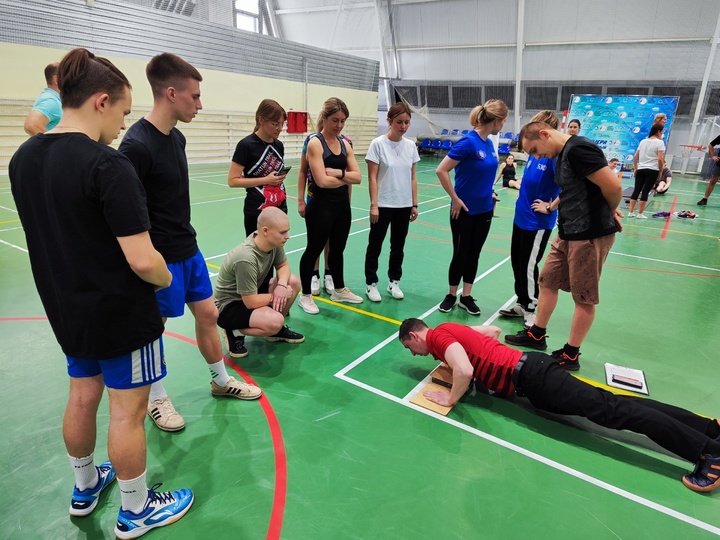 Участники проходили три испытания: наклон вперед из положения стоя на гимнастической скамье, отжимание, поднимание туловища из положения лежа на спине.