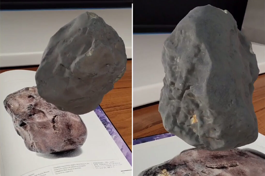 AR-образы включили в книгу о коллекциях музея. Чтобы увидеть их, достаточно навести камеру смартфона на иллюстрацию, и на экране появится трехмерная копия фрагмента метеорита. Осколок можно рассмотреть с разных сторон.