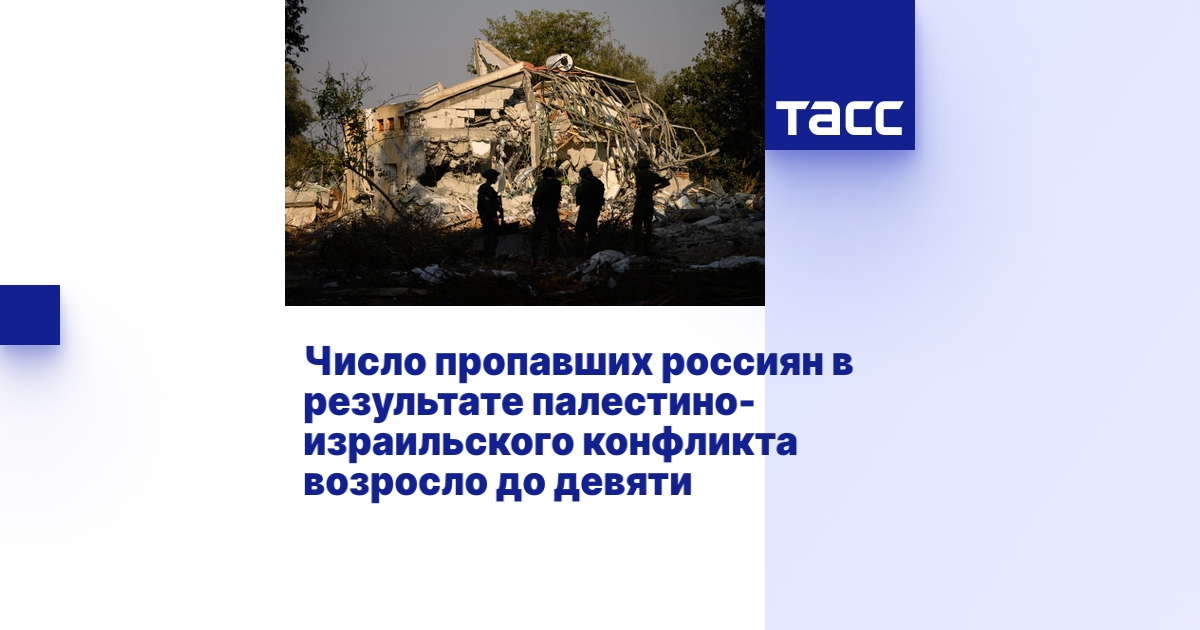 МОСКВА, 17 октября. /ТАСС/. Число пропавших без вести российских граждан после обострения в зоне палестино-израильского конфликта возросло до девяти, один россиянин с двойным гражданством числится в списке заложников ХАМАС, сообщил на пресс-конференции посол РФ в Израиле Анатолий Викторов.