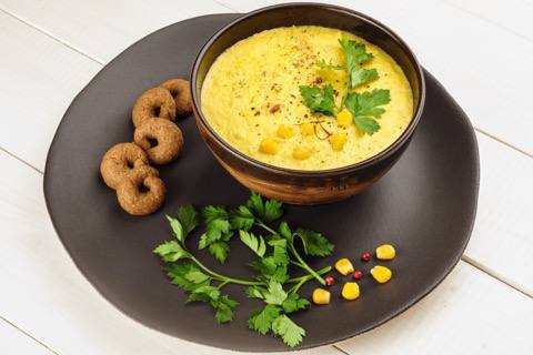 1․ Оставьте 1 ст. ложку зёрнышек кукурузы, а остальное пюрируйте блендером.
