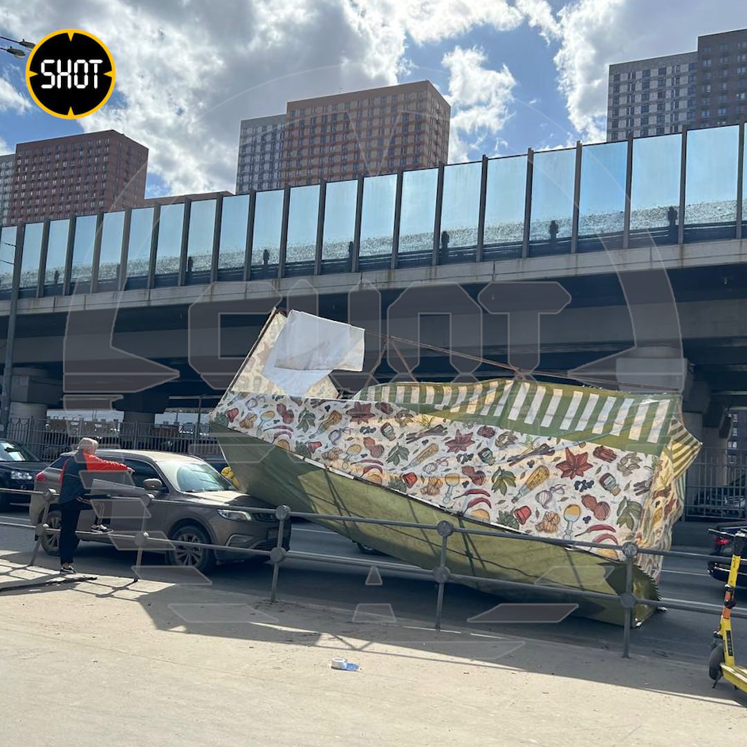 Ураганный ветер бушует в Москве: повалил несколько деревьев, перевернул палатки. Порывы ветра достигают 25 м/с.