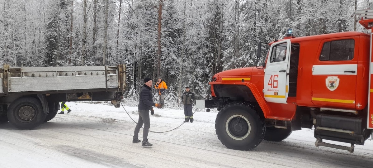 Как сообщили в отряде противопожарной службы по Прионежскому району, 25 марта в 9:17 на 85 километре трассы А-215 грузовик вылетел с дороги и перегородил проезд, движение было затруднено.