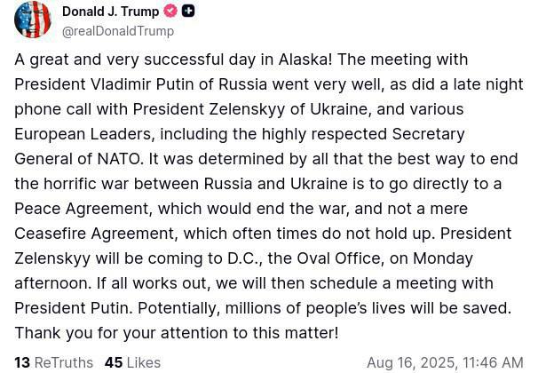Позиция Президента США после переговоров с Путиным извинилась, теперь обсуждать будут не перемирие, а итоги войны.