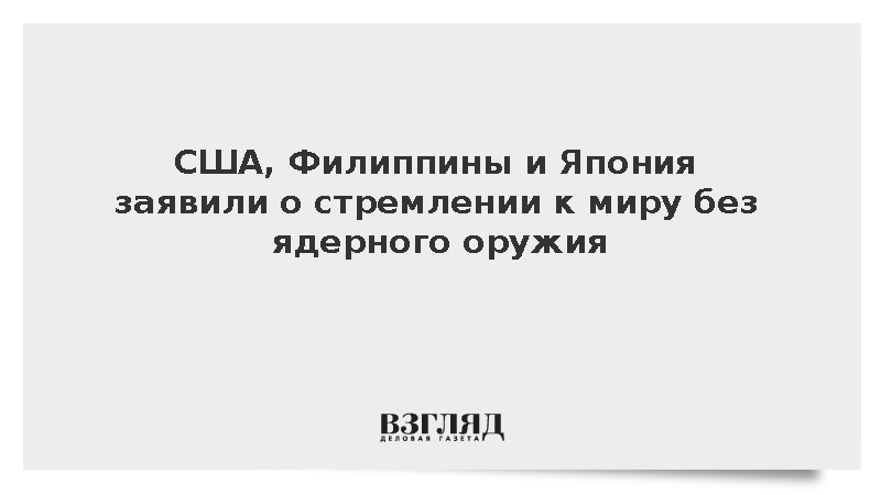 Соединенные Штаты, Филиппины и Япония подтвердили свою приверженность миру без ядерного оружия, говорится в совместном заявлении лидеров трех стран, распространенном пресс-службой Белого дома.