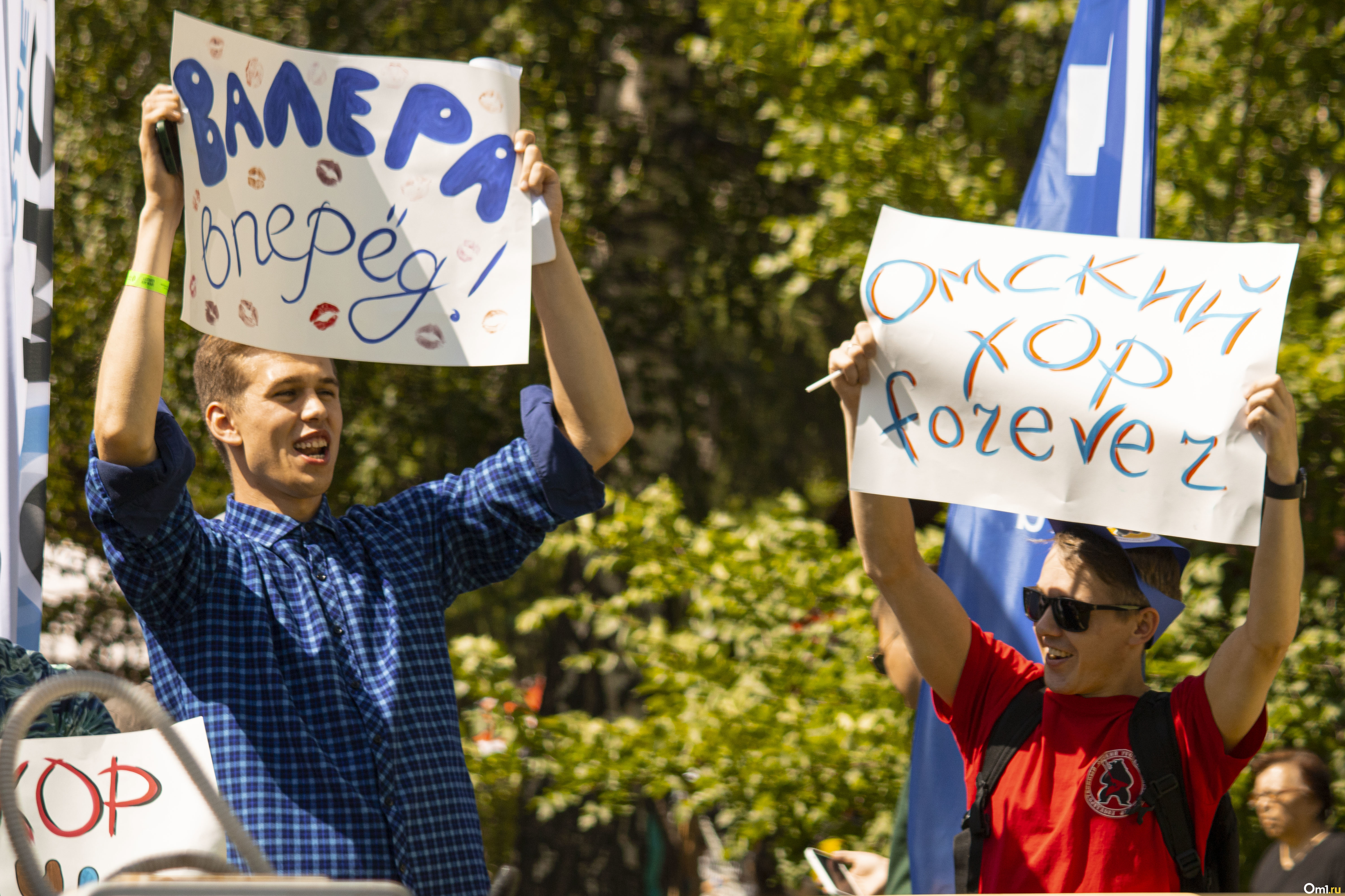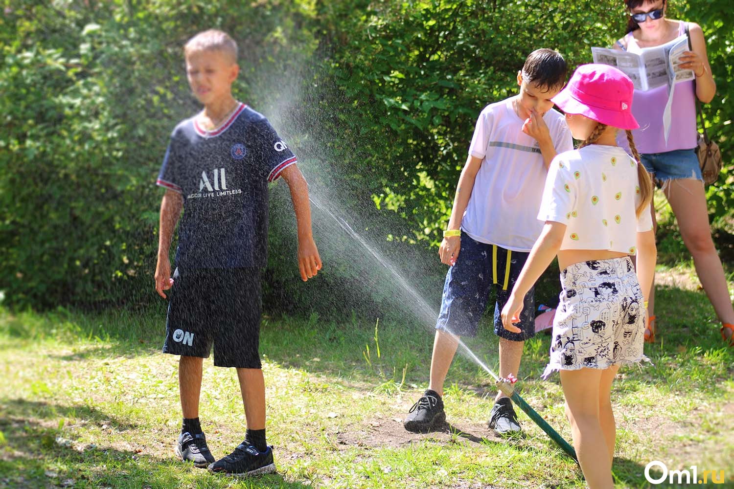 Во второй день в Парке на Королёва было ещё жарче. Во всех смыслах этого слова. Температура поднялась до +30 градусов — омичи защищались от солнца с помощью зонтов, платков и даже палаток. А маленькие гости праздника охлаждались водой из шланга.