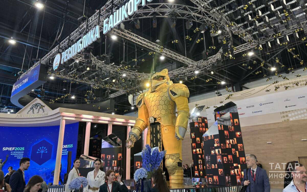Так, Республика Башкортостан построила в этом году огромного робота из сот, над которым летали пчелы. И раздавала футболки с цитатой Владимира Путина, за которыми к стенду выстроилась огромная очередь.