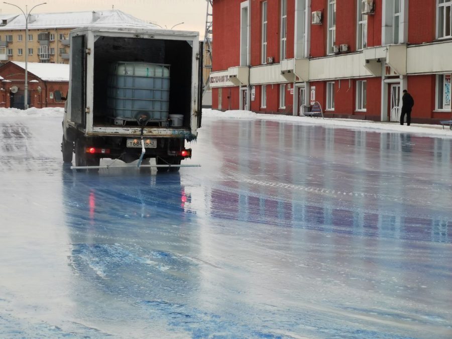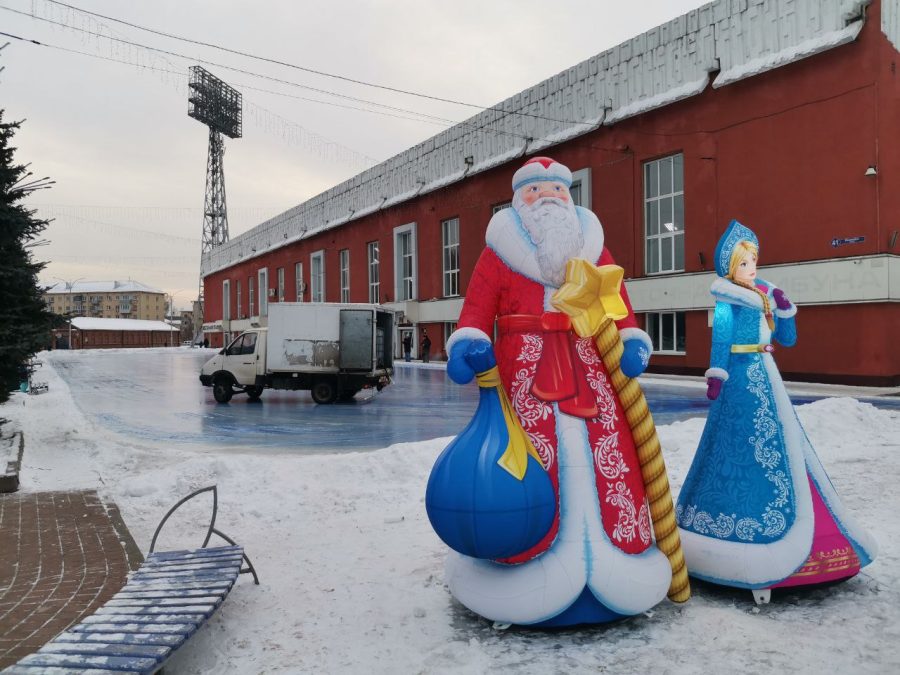 Главные герои праздника также приветствуют горожан и на стадионе «Химик». Каток у стадиона будет цветным, его заливкой в настоящее время занимаются специалисты. В этот раз лед будет голубого цвета.