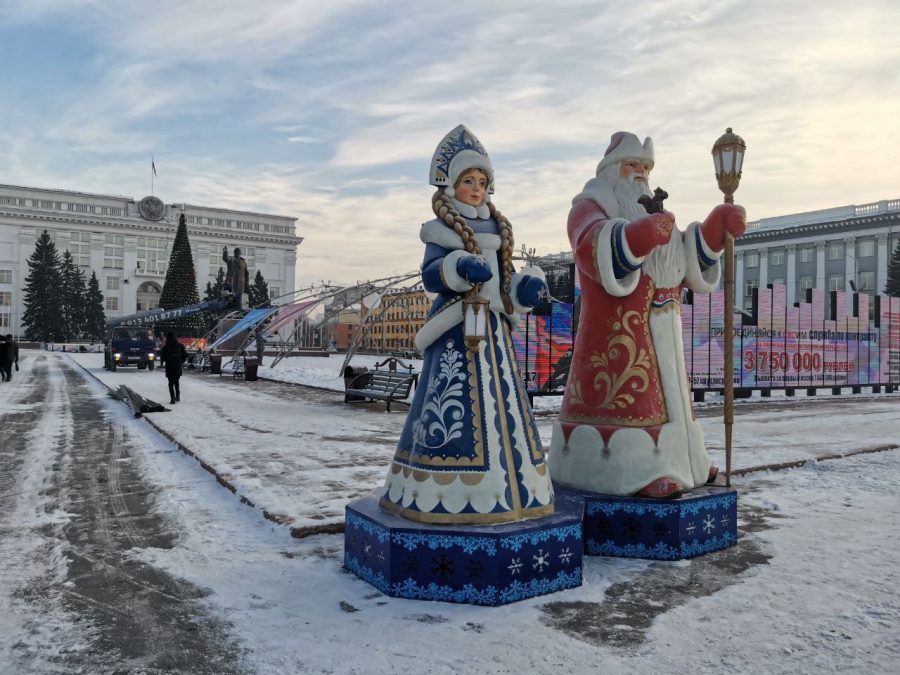В Кемерове доделали последние штрихи к Новому году. Сегодня, 30 декабря, на площади Советов горожане могут увидеть Деда Мороза и Снегурочку. Об этом сообщает администрация Кемерова.