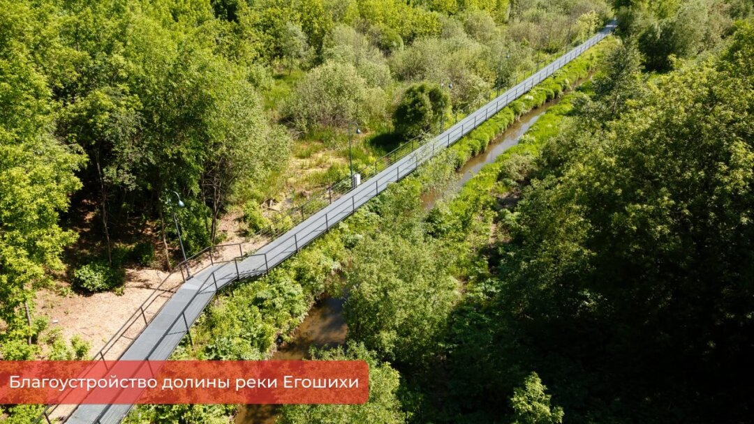 В экопарке долины реки Егошиха закончены основные работы по благоустройству. Сейчас подрядчики занимаются строительством визит-центров и обустройством дождевых садов, а также устанавливают входные группы, навигацию и информационные стенды.