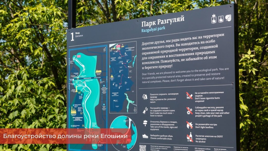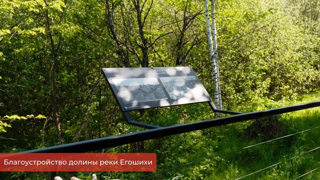 В пресс-службе администрации рассказали, что уже установлены 12 аншлагов, 28 указателей и 4 книжки, ещё 5 установим до конца недели. Информационные стенды рассказывают о разнообразии флоры и фауны долины реки Егошиха и о том, как этот природный объект влиял на развитие города в разное время. Они помогут посетителям ориентироваться на местности, изучать карту территории и узнавать правила поведения, которые помогают сохранить природу.